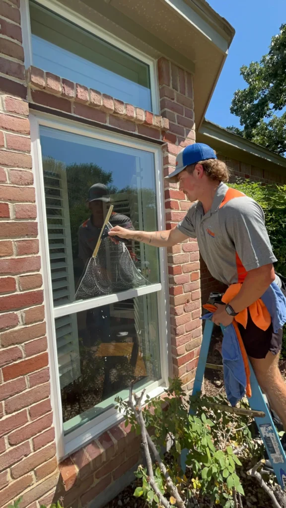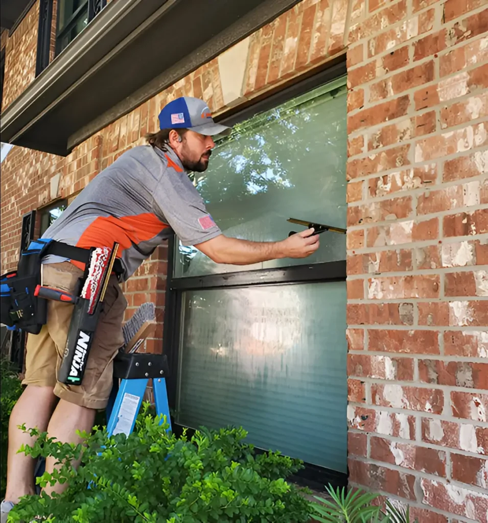 A typical residential window cleaning service usually includes washing the interior and exterior of the windows, screen cleaning, front track cleaning, wiping down the sills and frames, and removing any debris or buildup on the windows.